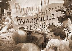 В субботу на 12.00 около здания Дворца культуры был назначен митинг. Сначала говорили, что люди возьмут тела своих погибших детей и поедут во Владикавказ, чтобы положить их на площадь перед зданием администрации. И ждать, когда к ним выйдет Дзасохов.