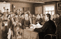 | Николай БОГДАНОВ-БЕЛЬСКИЙ (1868 — 1945) Воскресное чтение в сельской школе 1895, холст, масло, 97х154 см |