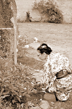 Потом перешли к могильным камням. Японцы верят в то, что частицы душ погребенных по-прежнему пребывают среди холмов чужбины.