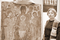 Особые опасения вызывают необратимые структурные изменения центральной части иконы.