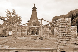 В двух шагах от «ПоЖАРки» возводится каменное здание на бетонном фундаменте, с тщательно выложенными известняком стенами. Фото: Лев Шлосберг
