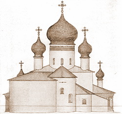 | Восточный фасад собора Рождества Богородицы. 1749 г. Реконструкция В. Е. Никитина. |